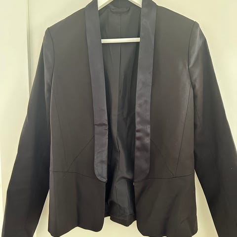 Kul vintage smokingjakke med fine detaljer. Perfekt til både penbruk og kombinert m/jeans. Str. M