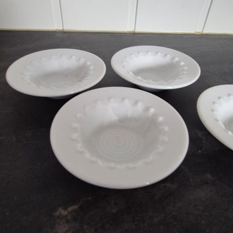 Selger 12 stykk farget glass med frostet flate fra Hadeland Glassverk. Fire forskjellige farger. Alle glassene har litt forskjellig former som gjør dem unike.