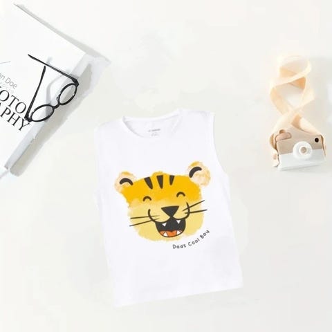 Pen brukt dinosaur trykk singlet for gutter og rund hals og perfekt for sommer.