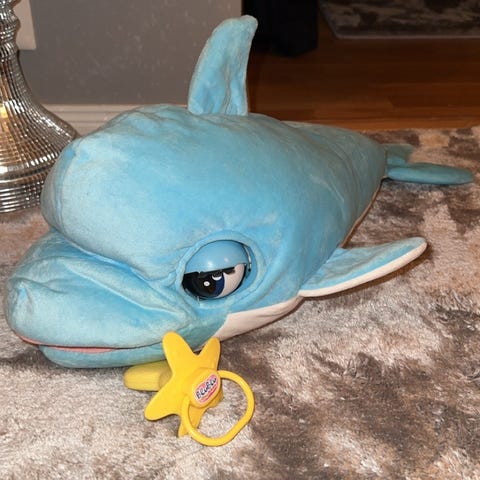 Lekedelfin med lyd selges siden den ikke blir brukt her mer.