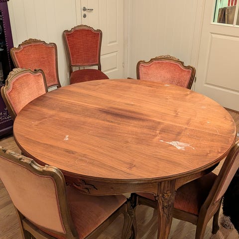 Rustikk spisebord i gjenvunnet Almetre som kan være opptil 200 år gammelt