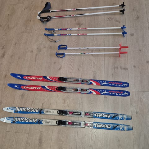 To brukte Madshus smørefrie barneski, godt brukt, men mye bruk igjen. Lengde 100 cm.