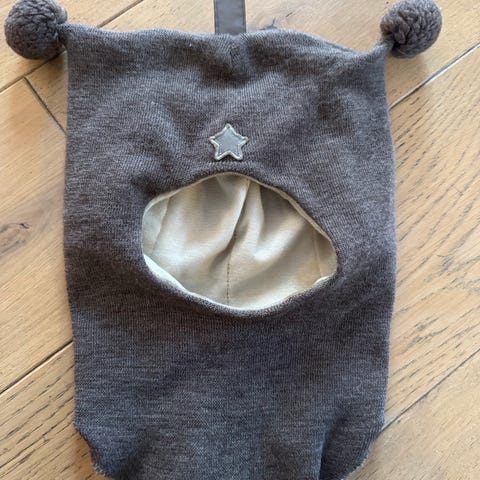 Veldig søt lue med dusker. Sitter godt på