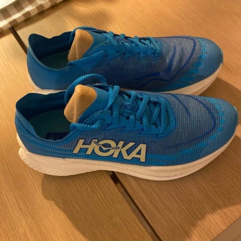 Godt brukte, men fortsatt fine og gode Hoka Mach X2 i størrelse 37 1/3. De ble kjøpt på Løpelabbet i fjor.