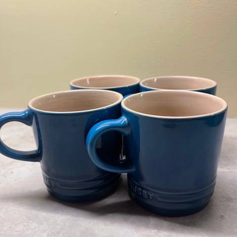Helt ny kopp fra Le Creuset i fargen Bluebell purpur. 350 ml. Har et lite skår i stetten under koppen ( se bilde).