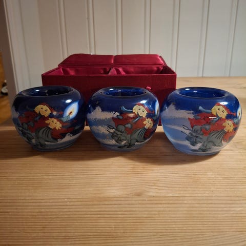 Selger 2 håndmalte telysstaker i esker - kr 90 pr stk