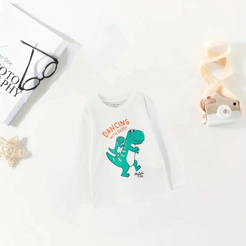 Langermet og rund hals og med detaljer T-skjort for gutter.