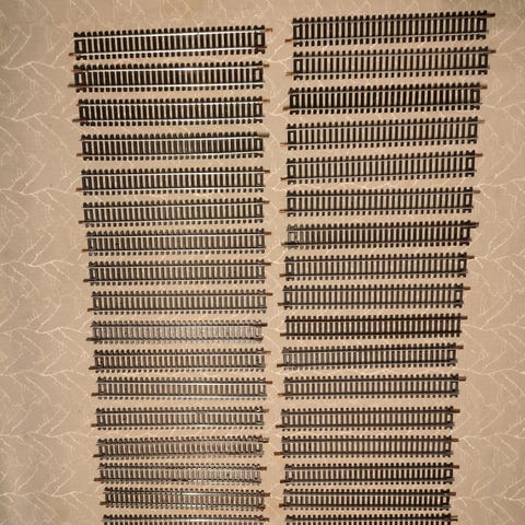 Dette er Lima HO-skala rett spor (artikkelnummer 3020) og buede spor for modelljernbane. Vekselspor også.