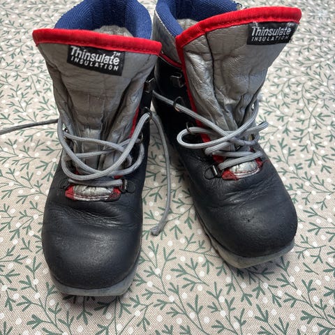 Varme skisko i lær. Skiskoene er mer slitt i læren enn det fremstår av bildene, men de er pusset med skokrem.