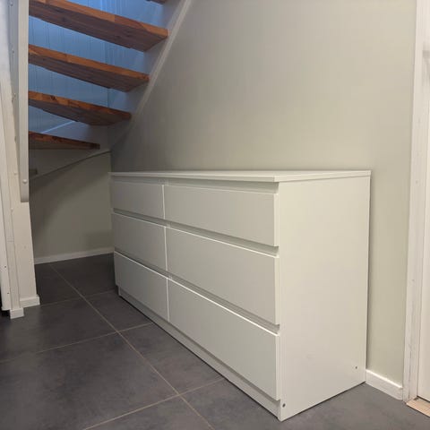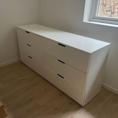 Mål: 160 cm bred, 76 cm høy, 47 cm dyp.
