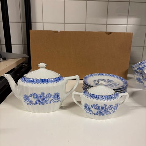Deler av blått sett som kan minne om China Blau /Bavaria. Billig til salgs, 10 kr pr del.
