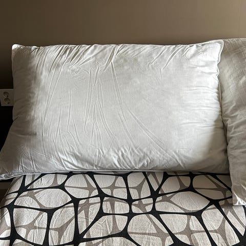 To stk ubrukte Princess Drømmedun dunputer selges rimelig pga flekker på poser