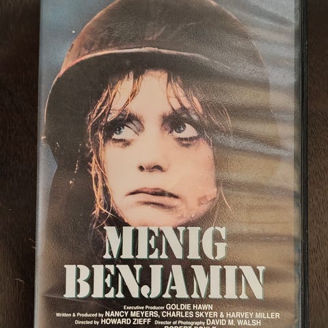 Menig Benjamin VHS-film med norsk tekst. Original tittel er «Private Benjamin». Kassetten er i VHS PAL-format og utgitt som komedie. Filmen har spilletid på ca. 1 time og 54 minutter. Teksten på omslaget er på norsk, og filmen er oppgitt med aldersgrense 10 år. På omslaget oppgis hovedrollene, samt kort handlingsreferat på baksiden. Egnet for avspilling på VHS-spiller som støtter PAL-format.