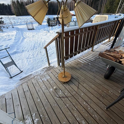 Gammel tivoli lampe 3armet. Lampe skjermer kan om ønskelig trekkes om. Fungerer og i orden.