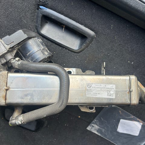 Skoda EGR-ventil med kjøler for eksossystem. Delen består av EGR-kjøler i metall med tilhørende rør og slanger, samt tilkoblingspunkter for montering i motorrom. Egnet som reservedel til Skoda-modeller der denne typen EGR-enhet er spesifisert. Kontroller delenummer og kompatibilitet mot egen bil før montering.