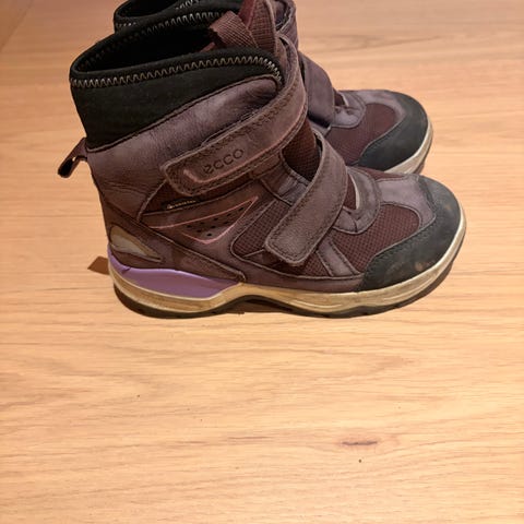 Gode vintersko fra Ecco (Snow Mountain) i str 26. Brukt av ett barn. Skinnet er litt tørt og trenger en runde impregnering før bruk. Men mye bruk igjen!