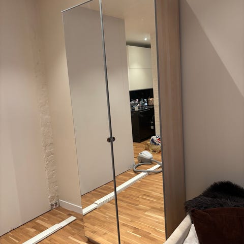 Praktisk smalt garderobeskap. Passer til gang/entre. Noen merker inne i skapet.