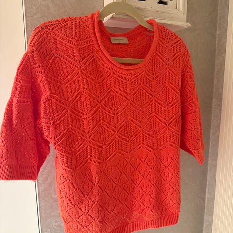 Alldeles nydelig genser i en herlig kvalitet av bomull og akryl. Størrelse L og normal i størrelse. Ubrukt og helt som ny fra butikk. Ny pris var rundt 900,-