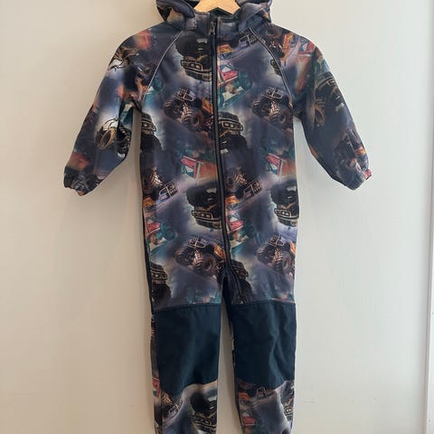Name it parkdress for gutt i størrelse 116. Dressen er laget i polyester og har et flerfarget mønster med dinosaurmotiv. Den har hette, lang glidelås foran, elastikk ved ermer og ben samt fotstrikk. Egnet som yttertøy for barn i barnehage- og småskolealder. Svært deilig med fleece innside. Nydelige farger og dinosaurmønster 🦕🦖kommer fra røyk- og dyrefritt hjem. Ta kontakt om du har spørsmål😊