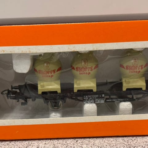 Lima HO 2842 vogn plattform med 4 tankcontainer av slotts senap db 0429