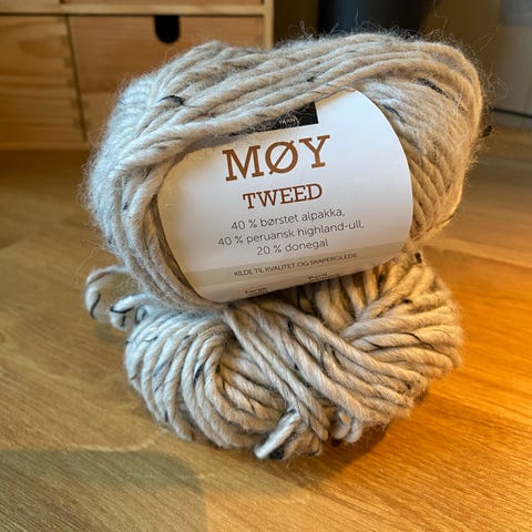 2 ubrukte Møy garnnøster i fargen Paris. Garnet består av 50 % alpakka og 50 % peruansk highland-ull.