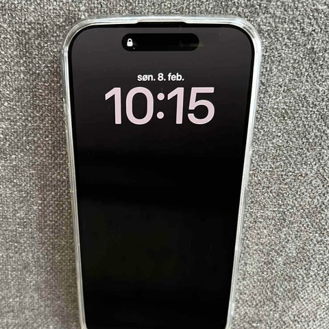 Selger en nesten ny iPhone 15 Plus med 128 GB lagring.