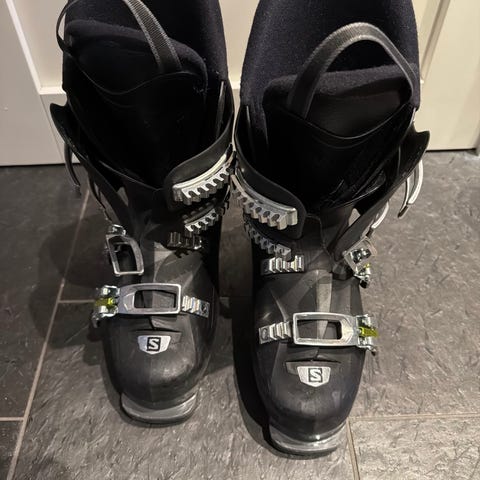 Selger et par Salomon QST Pro 100 alpinstøvler. Komfortable og solide støvler med god passform og stabilitet, som gir god kontroll og kjørefølelse i bakken. Skoene er i str 25,5