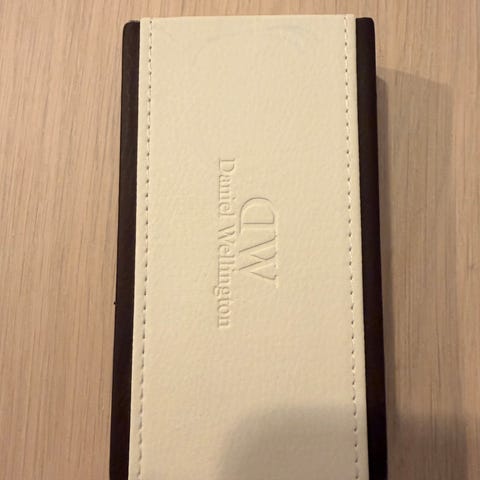 DW klokke med små stener i stedet for takk. Sort skinnreim som kan byttes til stripete. Batteriet må byttes.