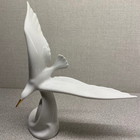 Elegant måke i svevet med et vingespenn på 25 cm. Perfekt håndmalt.