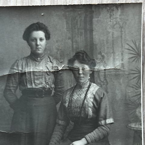 Gammelt fotografi (carte de visite) av to barn, datert 24. juli 1915