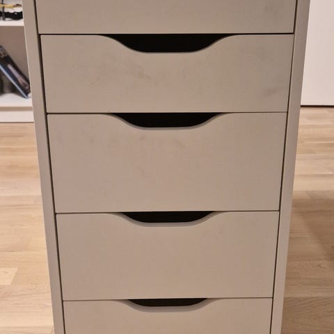 Kommode til å ha under pult med 5 skuffer. Mørkeblå