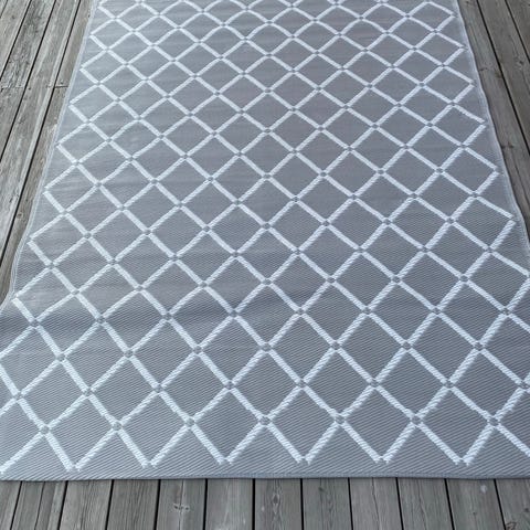 Rusta løper teppe blå og hvit mønster