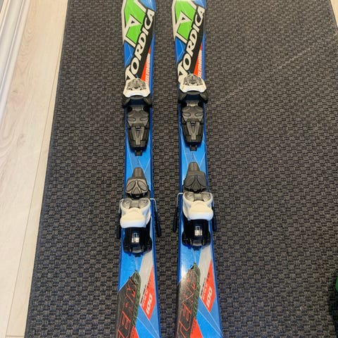 Nordica Team Race J alpinski i lengde 130 cm. Skiene har integrerte bindinger, og design i hvitt, svart, rødt og grønt. Baksiden har svart såle. Egnet som alpinski for barn/unge som ønsker en carvingski med race-preg til bruk i alpinbakke.