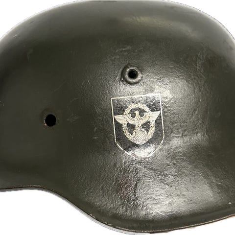 Selger en tysk M42 Stahlhelm som ble tatt i bruk av det norske Luftforsvaret etter andre verdenskrig.
