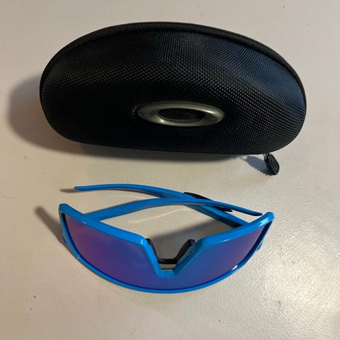 Oakley solbriller for unisex med svart innfatning og røde speilglass. Brillene har helramme i plast og rette stenger med Oakley-logo på siden. Passer til generell bruk utendørs der man ønsker solbeskyttelse for øynene. Designet gir god dekning rundt øynene og skjerming mot sollys fra flere vinkler.