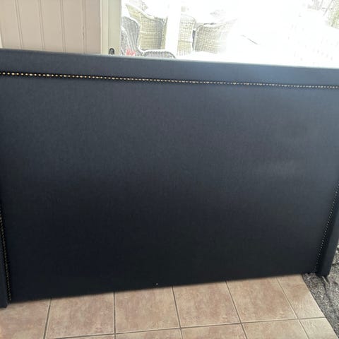 Kongsberg seng med hodegavl i grått tekstiltrekk. Sengen har polstret hodegavl med knappdetaljer og treben. Inkludert madrass og overmadrass. Egnet til soverom, gjesterom eller ungdomsrom, hjemme, på hytta ol.