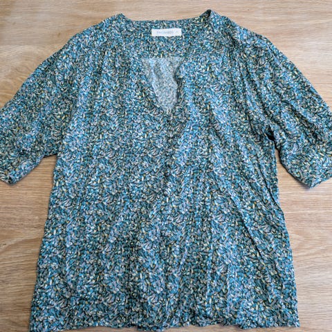 En langermet skjorte fra Twothirds i 100% økologisk bomull. Den er XS, men ganske stor i størrelsen så passer også S. Vasket med uparfymert vaskemiddel.