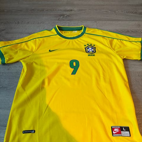 Brasil drakt kjøpt i Rio de Janeiro 2014. KI beskrivelse: Nike Brasil landslag fotballdrakt med nummer 10. Drakten er blå med stripet mønster og Brasil sitt landslagsmerke på brystet. Kortermet modell med v-hals. Autentisk-merke nederst på drakten. Egnet som fotballtrøye til trening, kamp eller fritidsbruk.