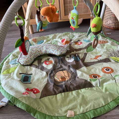Kjempepraktisk lekematte for å lære å krype! Alt er veldig pent brukt, så den er som ny og i orignalemballasjen. Vasket med parfymefritt vaskemiddel. Kortene er ubrukt. Fra røyk- og dyrefritt hjem.