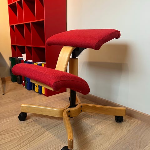 Selger en Varier (Variér) Move balansestol i sort. Dette er en ergonomisk “aktiv-stol” som gjør det lettere å sitte bedre gjennom dagen – spesielt bra til hjemmekontor og hev/senk-pult.