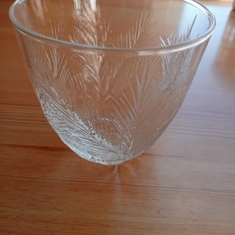12 stk Arcoroc Leaf drikkeglass. Høyde 10,5 cm. Diameter i topp 7 cm. 2 av glassene har fortsatt etikett på. Alle glassene er blanke og fine og uten bruksspor.