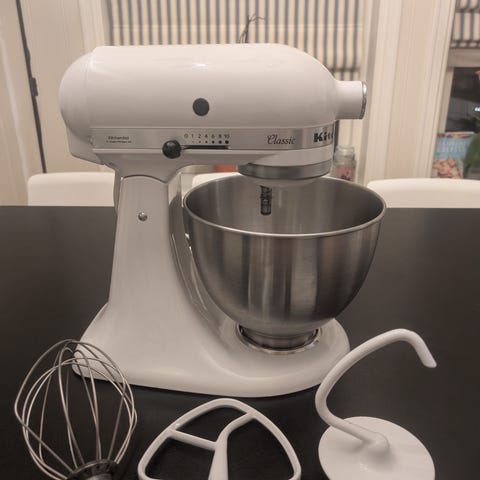 KitchenAid Artisankjøkkenmaskin i sølvfarge med bolle i rustfritt stål. Denne har også Vippehode , som er meget praktisk.👍 Dette er den store utgaven med kraftigere motor og stor bolle på 4,8 L. Maskinen leveres med visp, deigkrok og flatvisp, samt strømkabel. Bollen har håndtak for enkel håndtering. Kjøkkenmaskinen er egnet til elting av deig, pisking og blanding av ulike typer rører og ingredienser. Det følger med bruksanvisning og dokumentasjon som vist på bildene. Brukt kun 2 ganger. Vært på en liten rep på Servicesenter via Jernia.