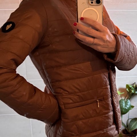 Mos Mosh ulljakke for dame i størrelse 38. Jakken er i flerfarget rutemønster med hovedtoner i gult, brunt, svart og hvitt. Materialet er ullblanding, som gir et mykt og varmt plagg. Modellen har skrå glidelås i front og krage med slag, samt kort, rett fasong.