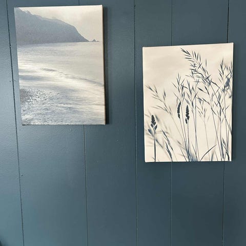 Bilde av Elefant er 80x105 cm og bilde av sau 100x100 cm.