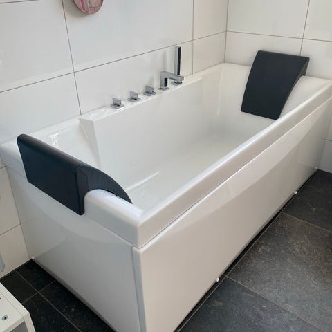 Vivera massasjebadekar i hvit utførelse. Badekaret har flere innebygde dyser langs sidene og i fot- og ryggpartiet. Det er integrert nakkestøtte ved hodeenden for økt komfort. Badekaret er utstyrt med blandebatteri, hånddusj og betjeningshendler montert på karkanten. Egnet for innbygging i baderom med rette flater rundt karet. Passer for én person av gangen.
