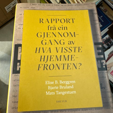 Elise B.Berggren, Bjarte Bruland & Mats Tangestuen - Rapport frå ein gjennomgang av hva visste hjemmefronten? (2020)