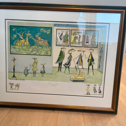 Bildets tittel er Trobadors. Rammemål: 69 x 55 cm. Treramme med glass. Signert og nummerert 8/100.
