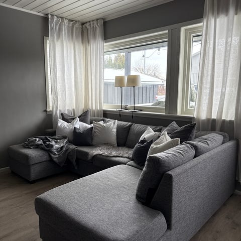 Sofaen er hel og pen, med normal bruksslitasje. Ingen kjente skader. God plass til hele familien eller gjester.