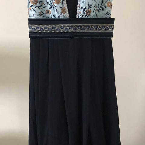 Fin festdrakt til undgdom. Passer til jente ca 1,65 høy, og over. Kan legges ned på lengde og syes ut i liv. Følger m halstørkle.