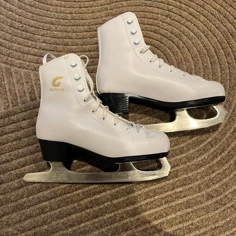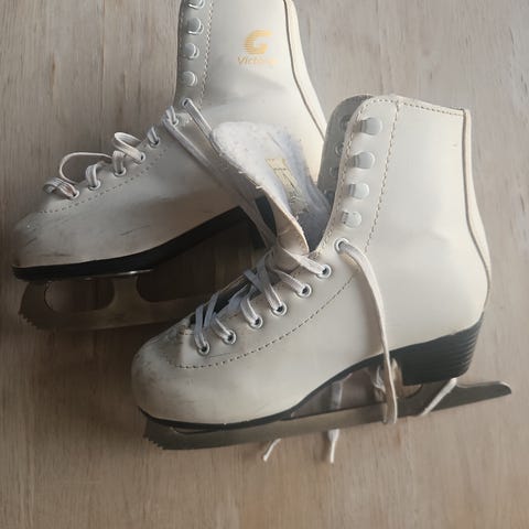 Victoria kunstskøyter i hvit farge. Klassisk modell med snøring og høyt skaft som gir støtte rundt anklene. Skøytene har metallblad med hælparti i plast. Egner seg til bruk på isbaner for rekreasjons- og enkel kunstløpsbruk. Størrelse 29. og bør kontrolleres mot egne mål før bruk.